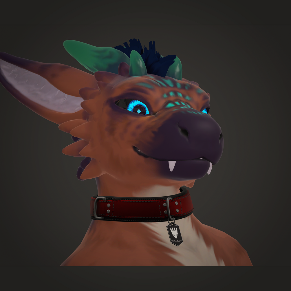 The perfect creature collar for those who like some more simple utility. Includes 8 textures, a .psd editable file for the collar tag, and drag and drop compatibility through vrcfury.